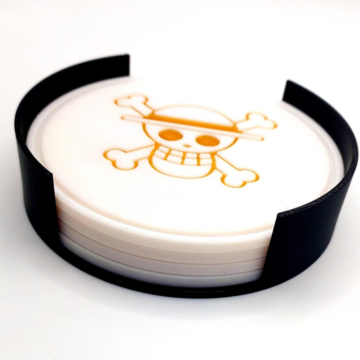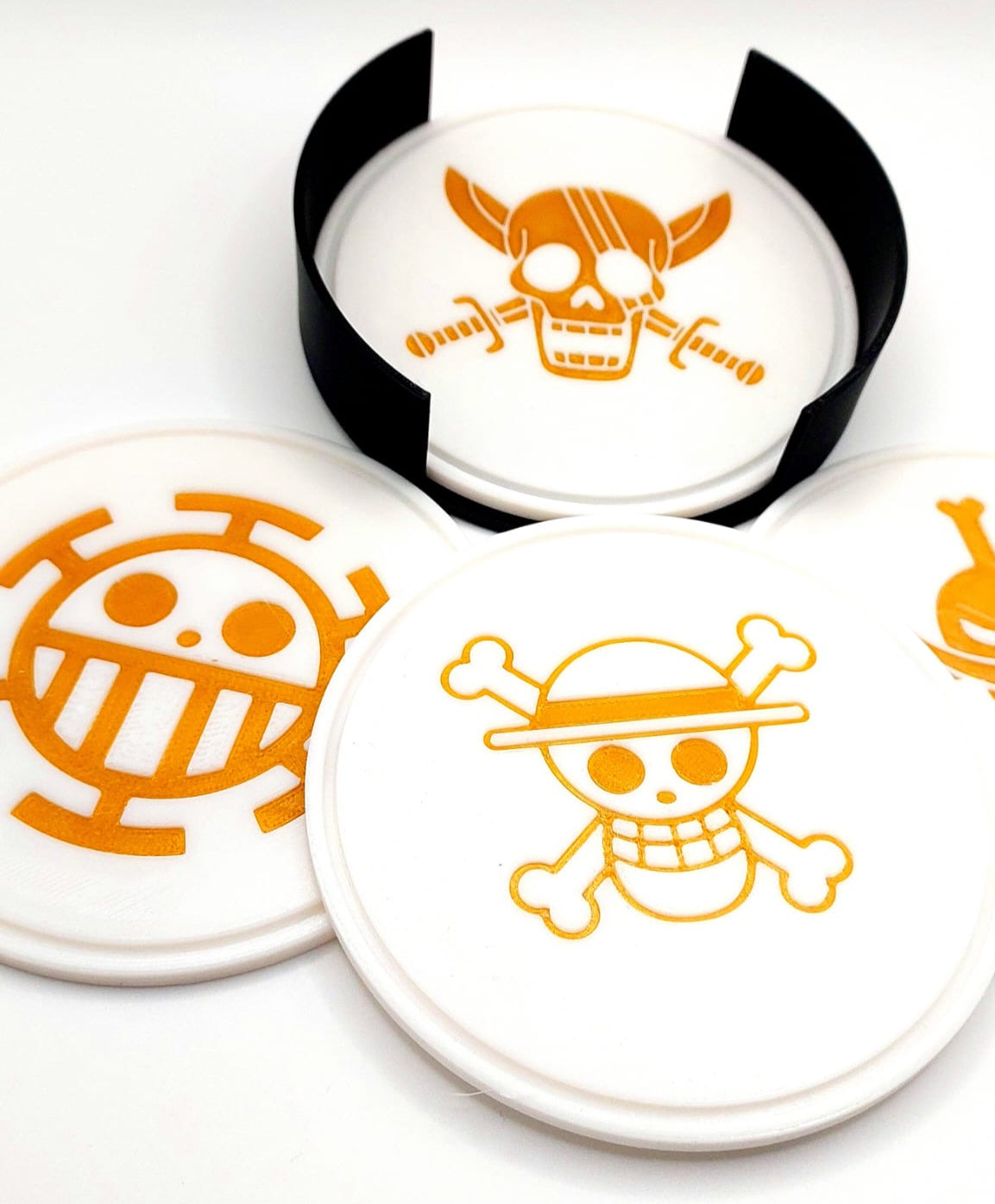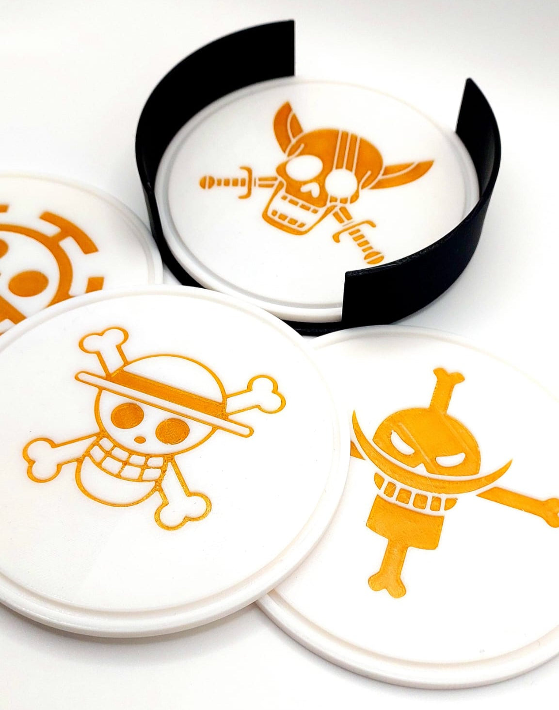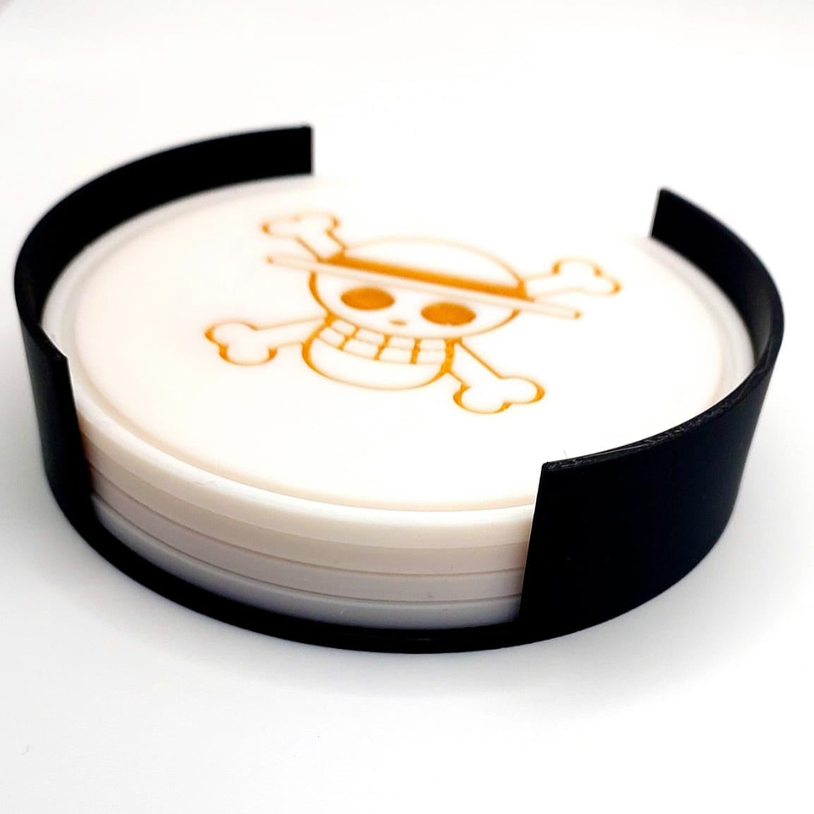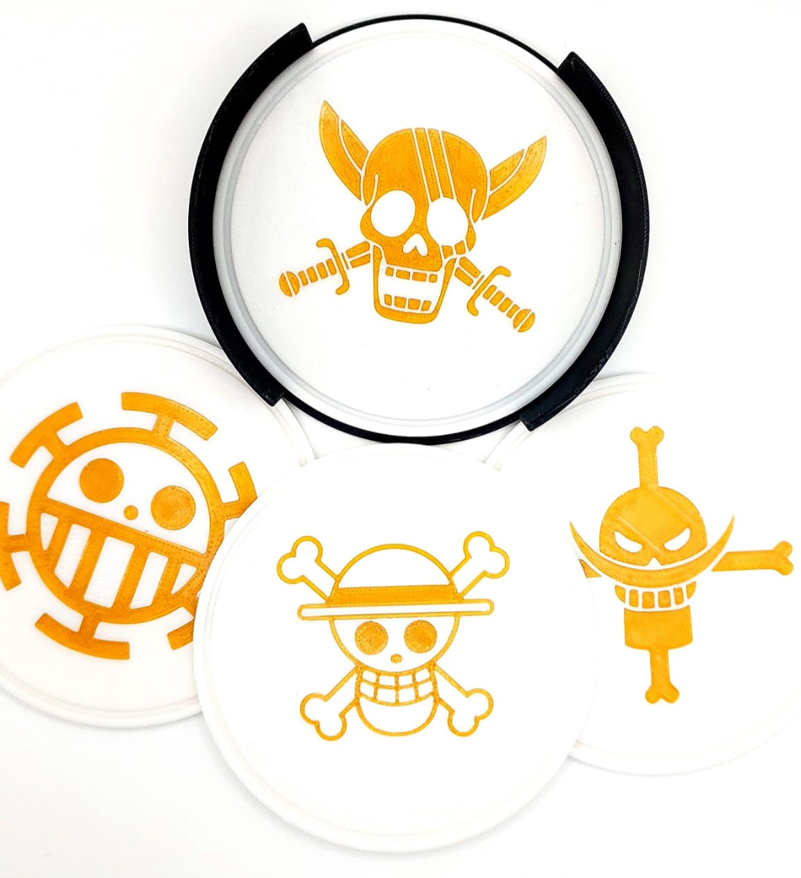 Este conjunto de bases para copos inspirado em One Piece é perfeito para os verdadeiros fãs do anime. Feito em PLA de alta qualidade, possui um design detalhado com símbolos icônicos da série, protegendo sua mesa com muito estilo.
