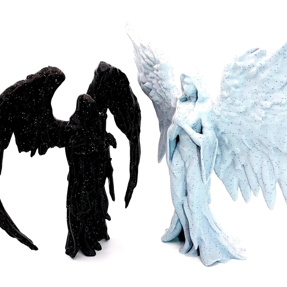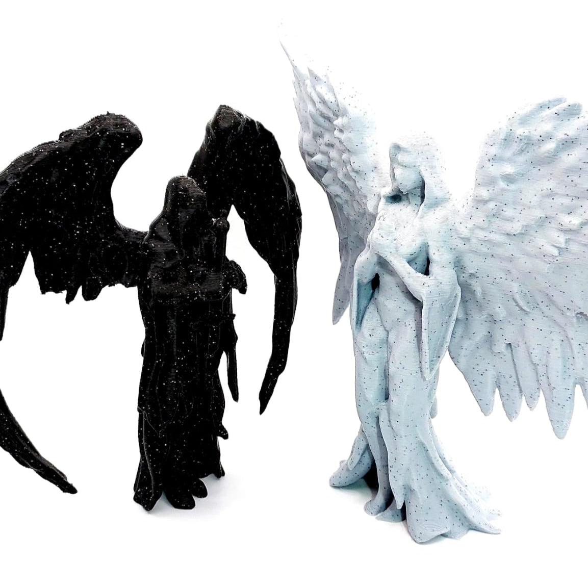 Este conjunto incrível representa o eterno confronto entre o bem e o mal, com um anjo e um demônio esculpidos com detalhes impressionantes. Feitos em PLA de alta qualidade, cada peça transmite força, beleza e simbolismo. Ideal para decoração ou como presente único.