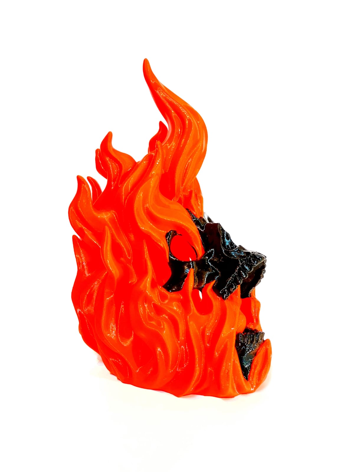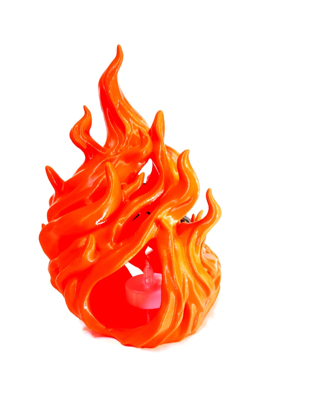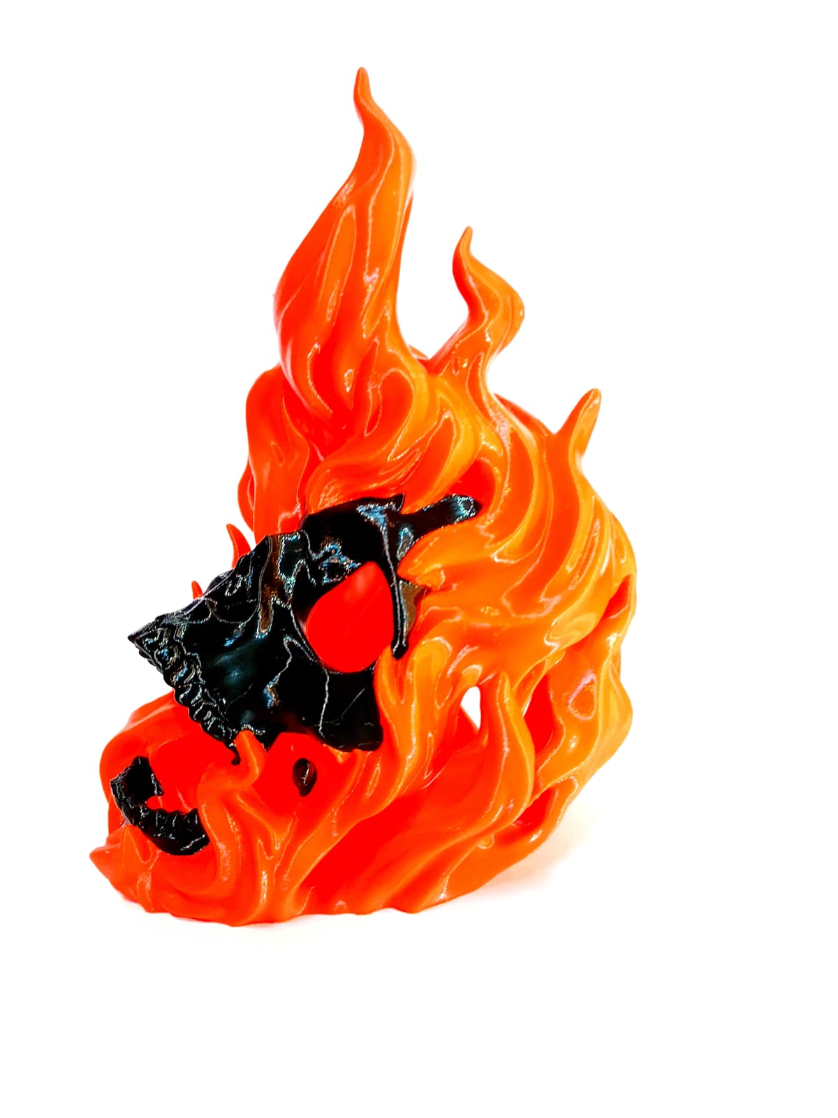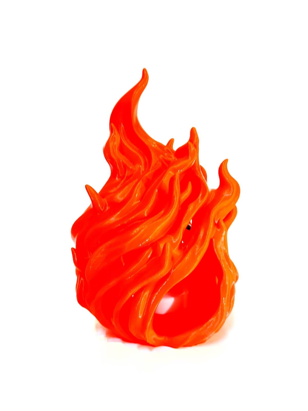 Uma peça impressionante com um design detalhado de chamas, perfeita para decoração ou colecionadores que curtem um estilo marcante e ousado.