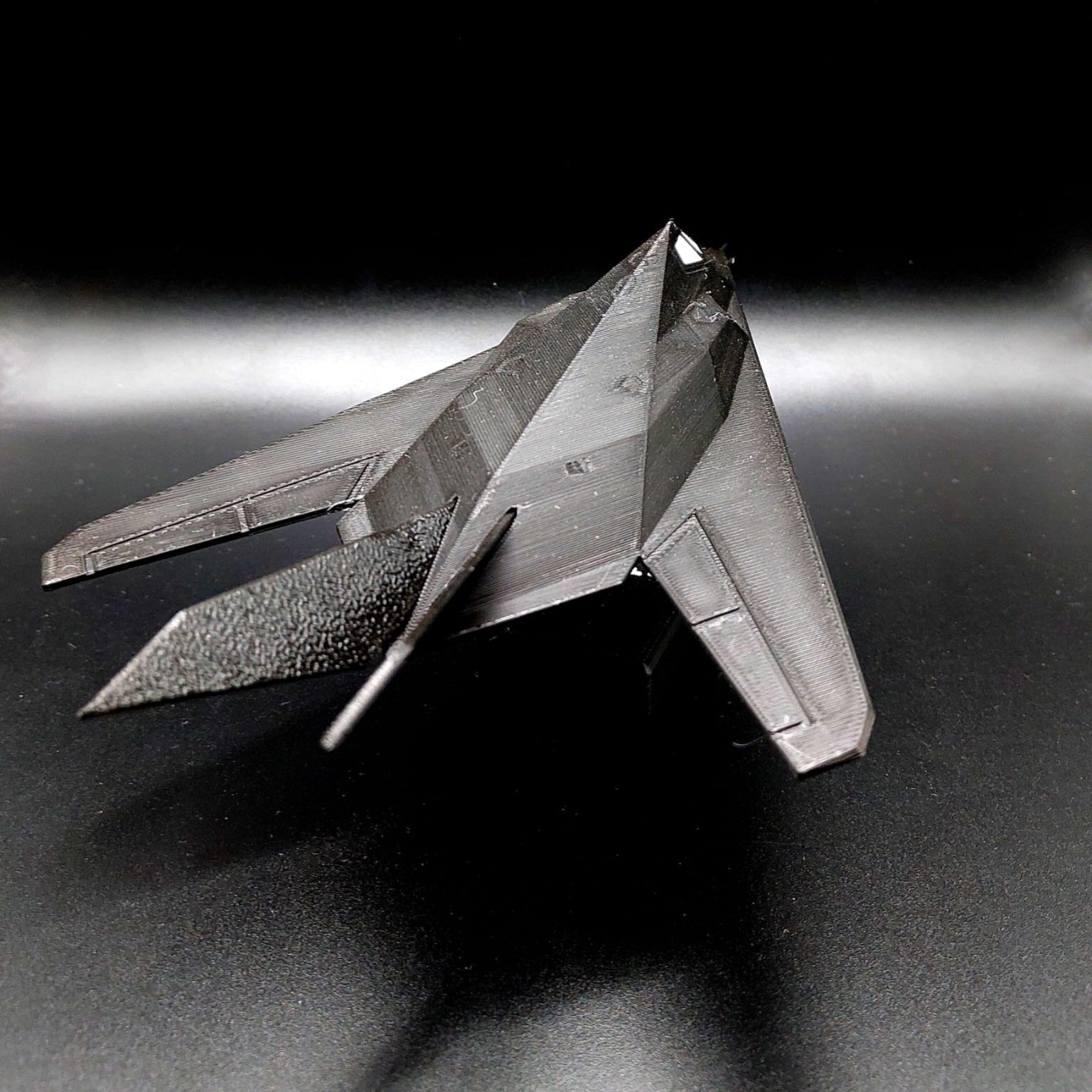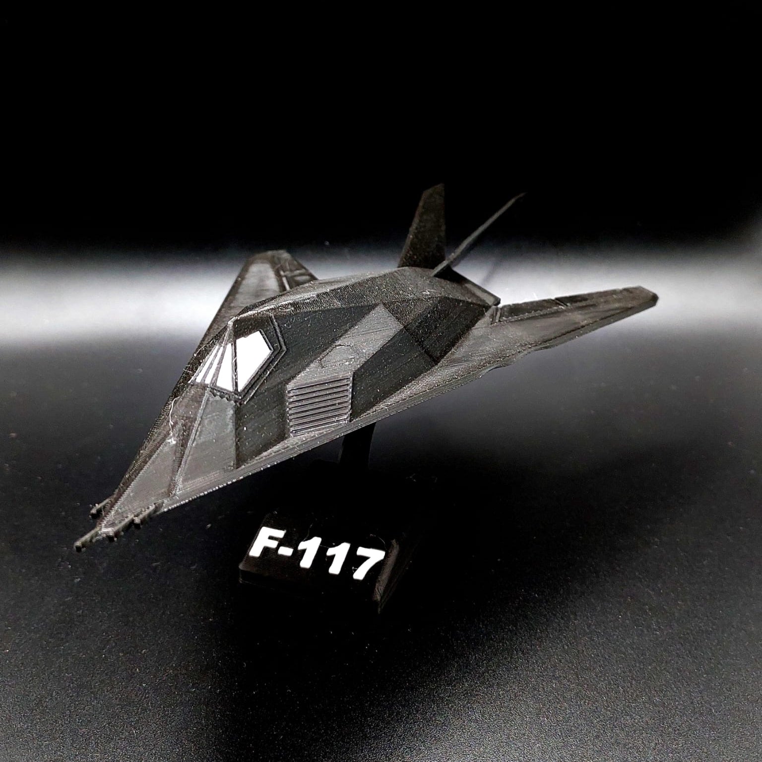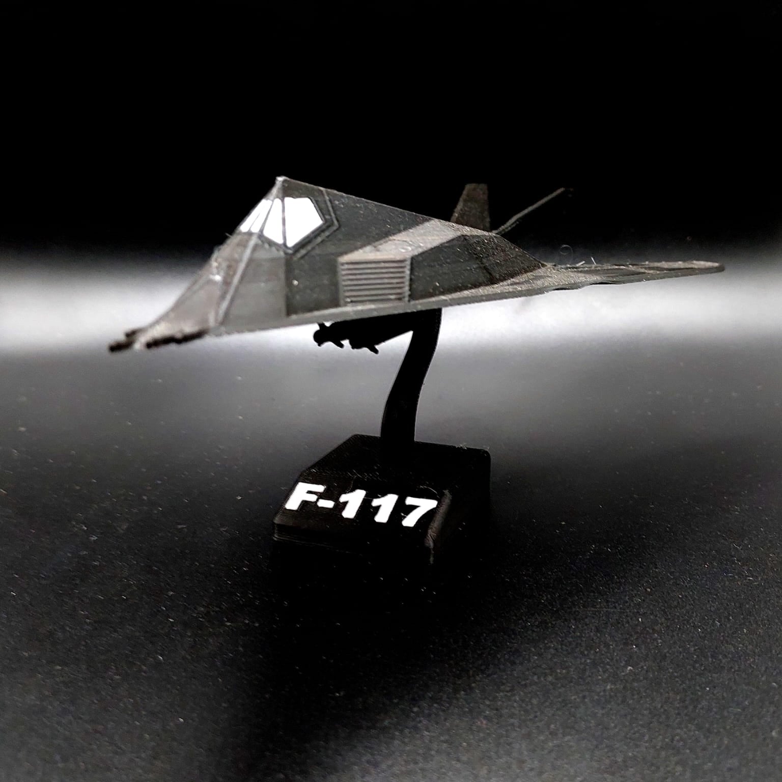 O icônico F-117 Nighthawk, representado em uma estatueta detalhada, perfeito para fãs de aviação e colecionadores.