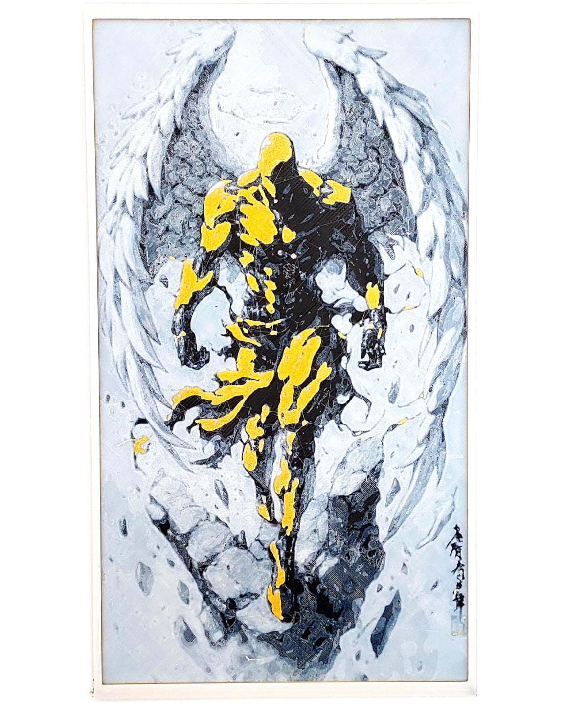 Este quadro com o design de um anjo traz uma aura de paz e elegância para seu ambiente. Com uma impressão detalhada e suave, é perfeito para quem busca um toque de serenidade e inspiração em sua decoração.