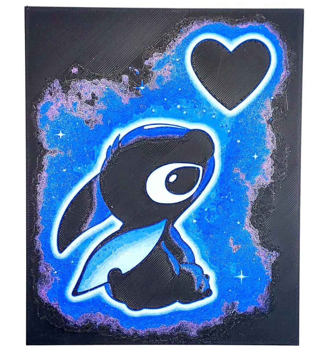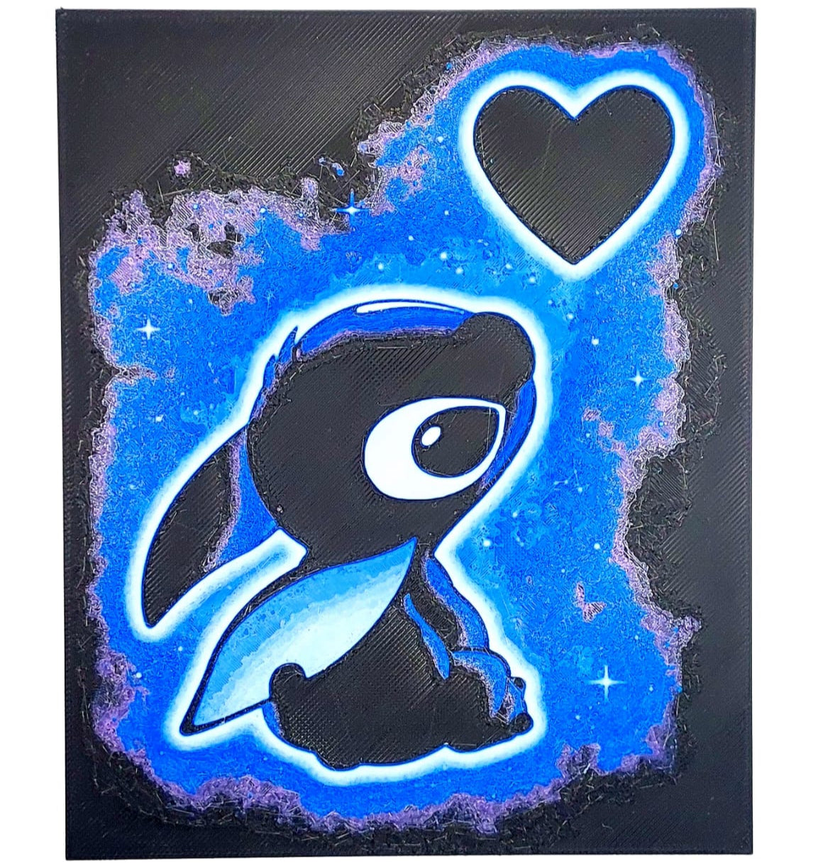 Este quadro do Stitch é perfeito para fãs da adorável criatura azul. Com um design detalhado e feito em PLA de alta qualidade, é uma peça decorativa única que traz charme e diversão para qualquer ambiente.