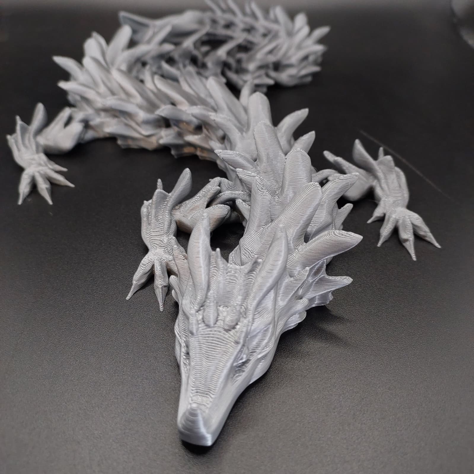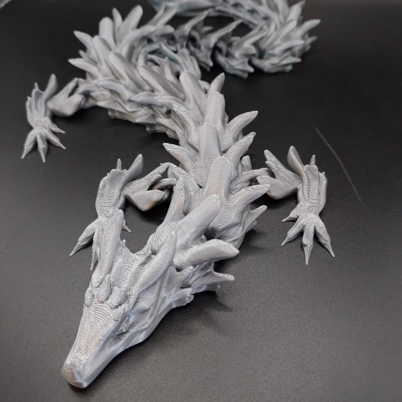 Um dragão elegante e poderoso, com brilho prateado e detalhes incríveis!