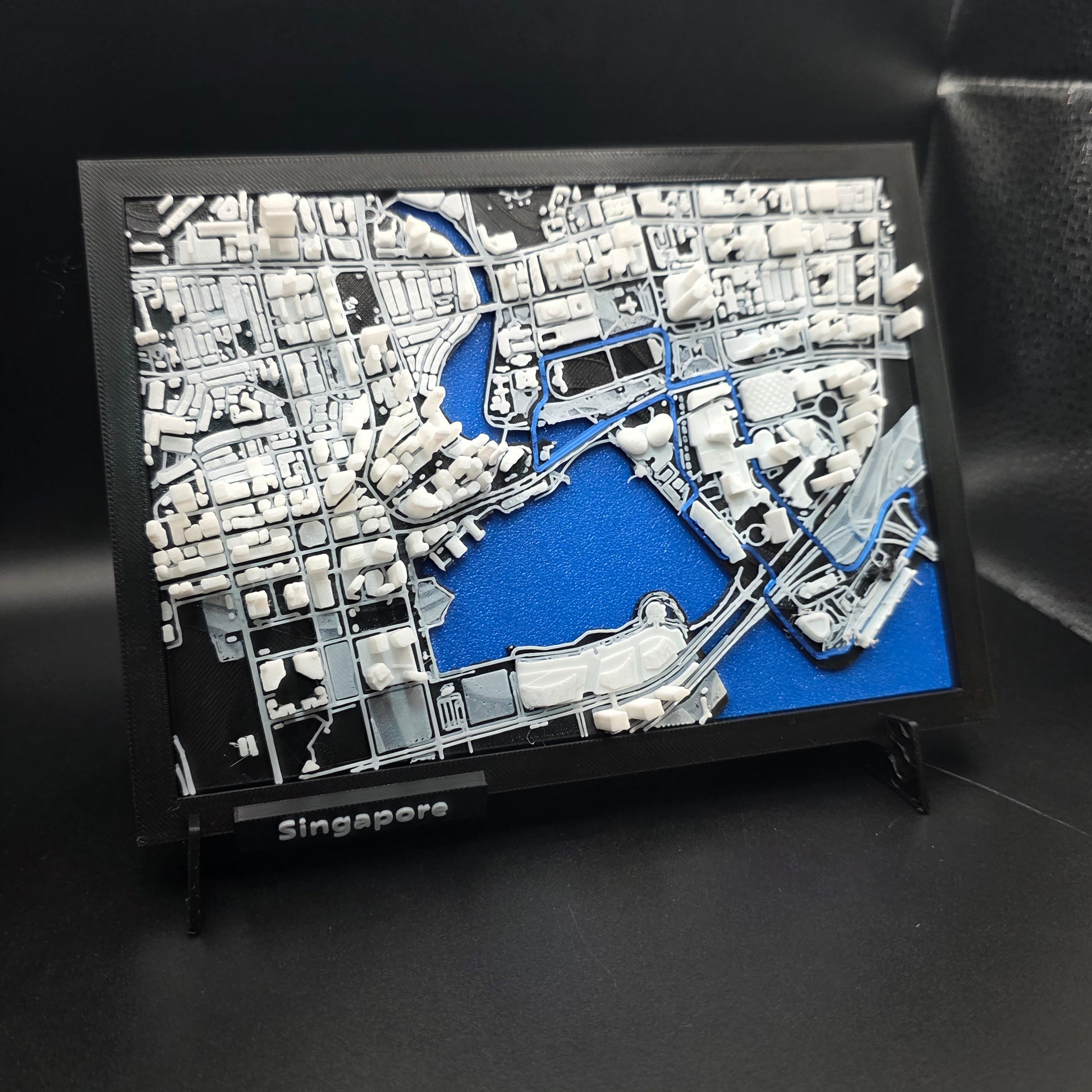 Explora cada curva e detalhe do icónico circuito de Singapura com esta peça topográfica minimalista!